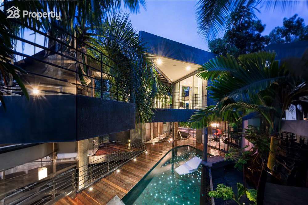 A private swimming pool and lush garden create a serene oasis in the heart of Bangkok.